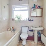The three piece bathroom comprises of a low level w/c, bathtub with shower attachment and wash hand basin.