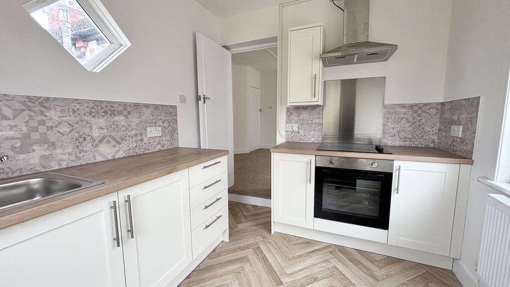 KITCHEN 10' 03" x 8' 02" (3.12m x 2.49m) Brand new fitted kitchen with a range of base and eye level units. Washing machine and fridge-freezer to be provided by tenants. Electric cooker and hob with extractor fan over. Stainless steel mixer tap and draining board. Access to garden. Radiator to side.