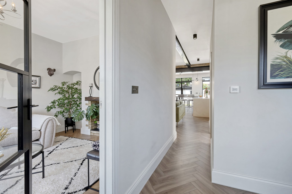 AGENTS NOTES The current owners have lived here for several years and have carefully extended the home to create a perfect family home thoroughly designed and executed with top quality finishes throughout. The front provides plenty of parking and a double garage sits to the rear garden as well as a small garage/storage area to the side. The rear garden boasts a large patio coming off the living room to the rear with an additional decked patio area set to the side of the garage.