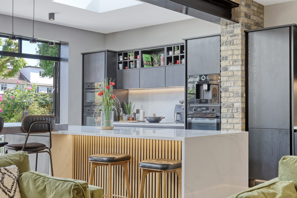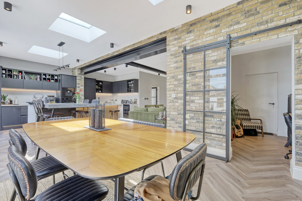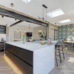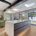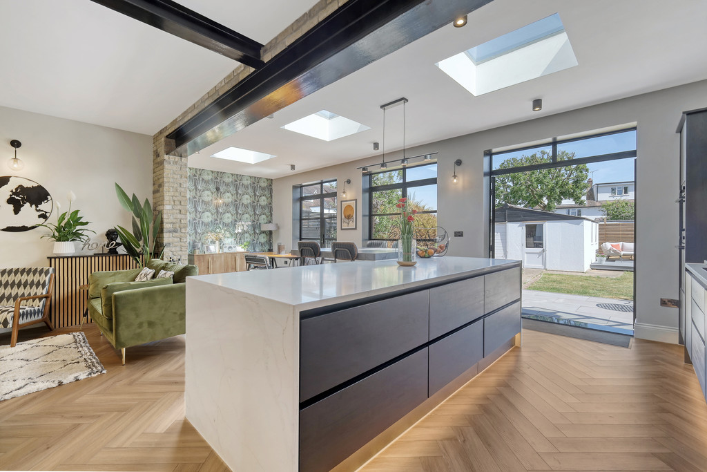 OPEN PLAN LIVING ROOM /KITCHEN 28' 8" x 30' 0" (8.74m x 9.14m) Under floor heating and stunning quality windows and doors. Extended to create a jaw dropping room with plenty of light highlighted by the additional roof light windows.